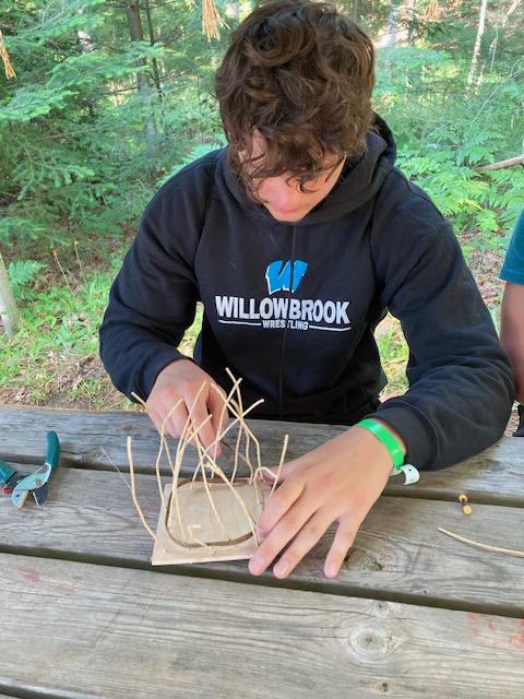 Summer camp was in the Northwoods of Wisconsin by the bogs and lakes North of Rhinelander, Wisconsin. Our third year back as a troop and we had the Tower Ridge campsite to ourselves. Nuke ’em was an ongoing hit at the volleyball net and a big game of capture the flag that spread out over the entire activity area. Merit badges including fishing, swimming, basketry, painting, sculpture, wilderness survival, sports, rifle shooting, first aid, climbing, movie making, environmental science, bird study, insect study, mammal study, fish and wildlife, and soil and water conservation were taken and completed. We even had a scout finish the mile swim (more like mile and a half, though…).
