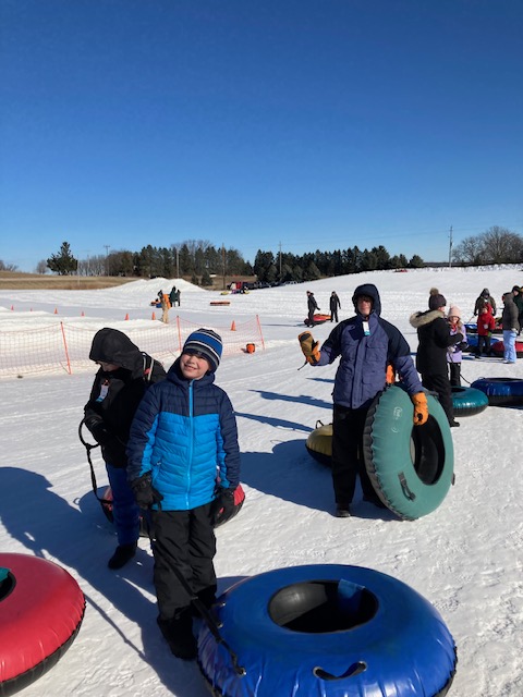 Cabin camping at Camp Long Lake was enhanced by a day on the slopes with tubing and skiing on a crystal clear day!
